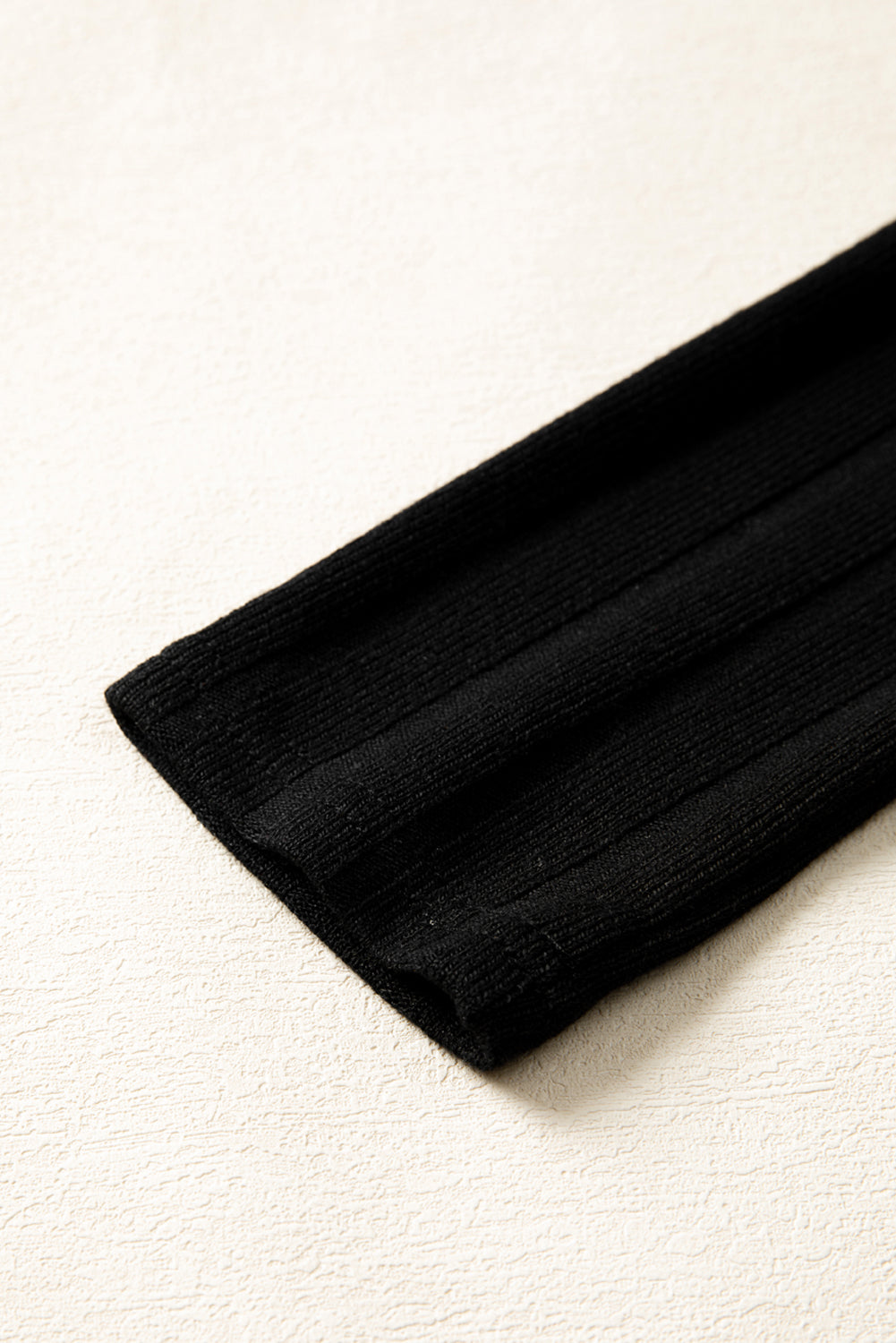 Black Frilled Neck Ribbed Knit Patchwork Long Sleeve Mini Dress